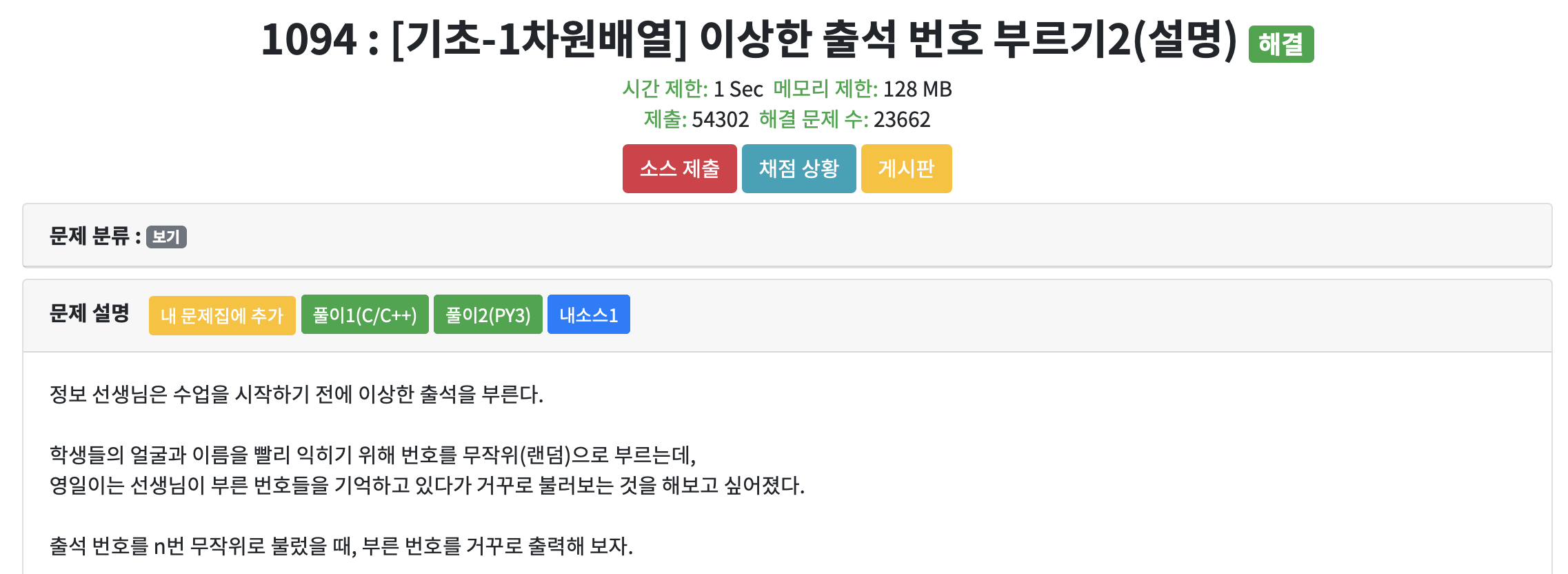 | CodeUp 1095[기초-1차원배열] 이상한 출석 번호 부르기3 -C/C++ (0) | 2020.10.23 |