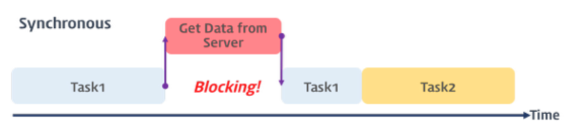 즉, 태스크는 순차적으로 실행되며 어떤 작업이 수행 중이면 다음 작업은 블로킹(blocking, 작업 중단) 된다.