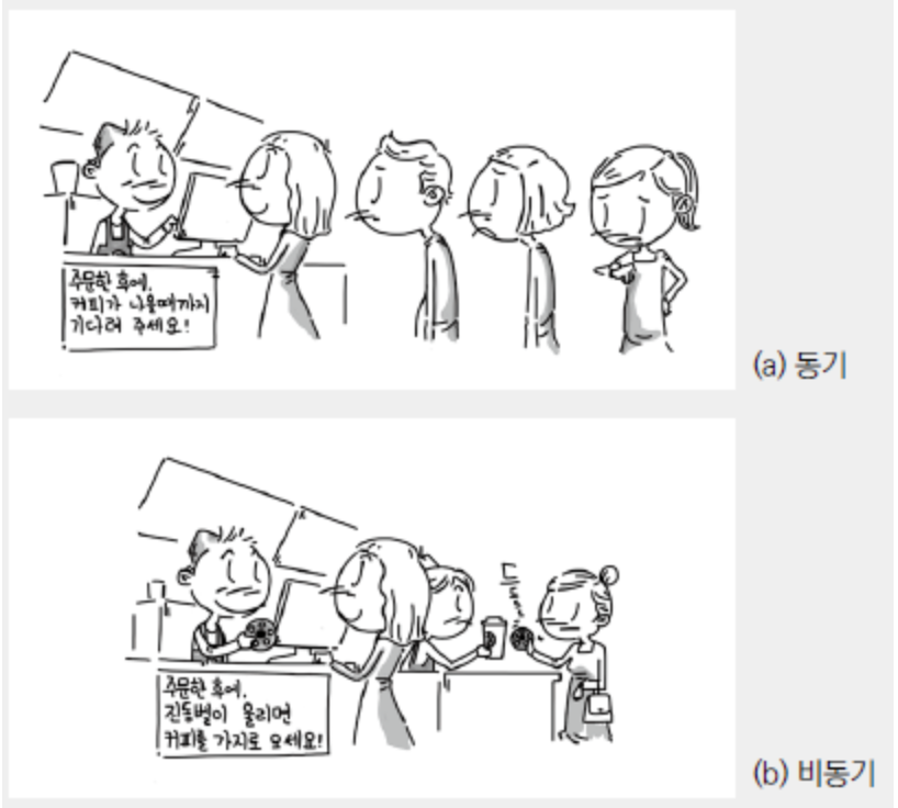 동기는 요청 후 결과를 받을 때까지 다른 일을 하지 못한다.