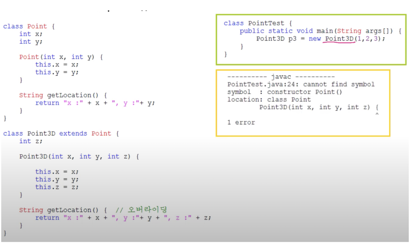 에러 나는 이유는 Point3D에서 super(); -> Point()를 호출하게 된다.