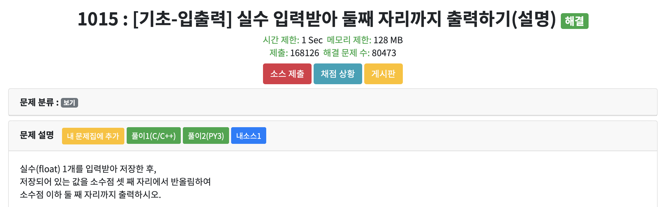 | CodeUp 1012 [기초-입출력] 실수 1개 입력받아 그대로 출력하기(설명) - C/C++ (0) | 2020.06.12 |