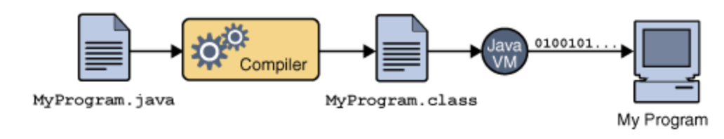 Java compiler를 사용해서 .java(원시코드)로 부터 .class(Java bytecode)을 생성한다.