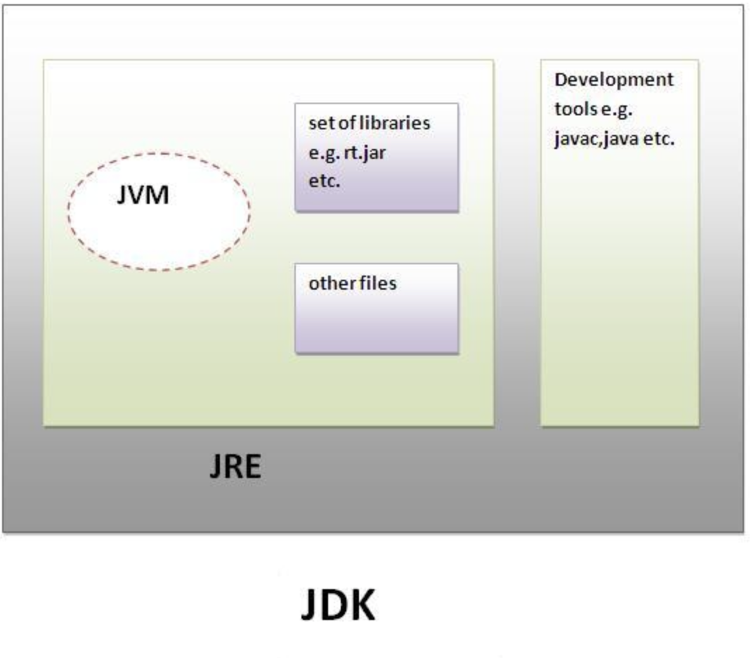 자바 개발도구 (Java Development Kit)는 JRE + 개발을 위해 필요한 도구(javac, java등) 컴파일러, 디버거 등을 포함한다.