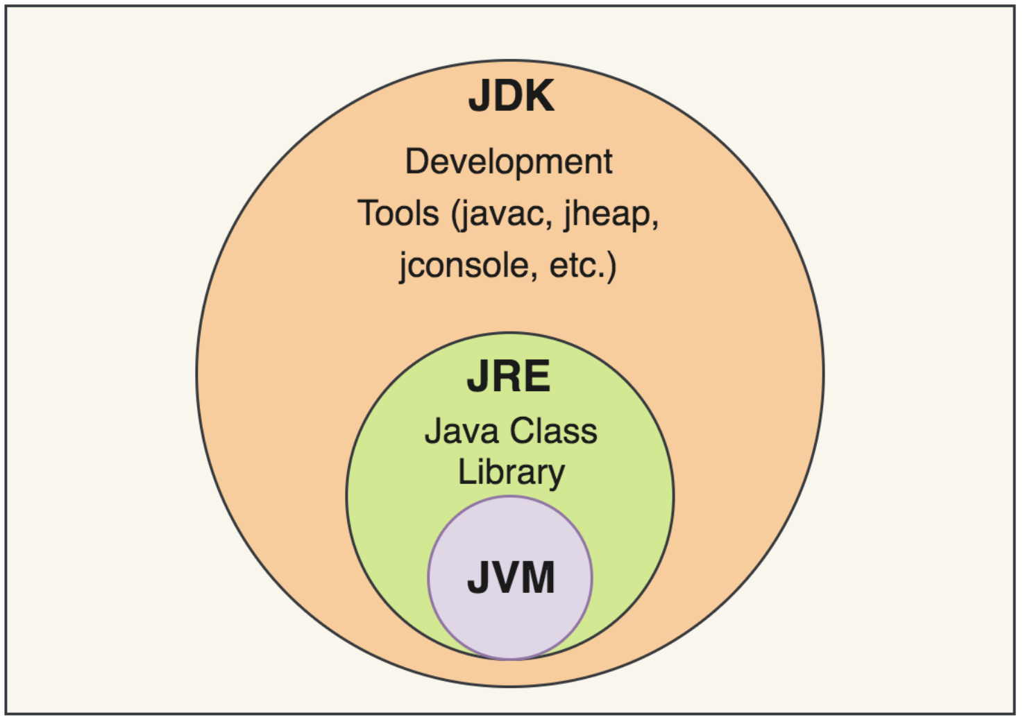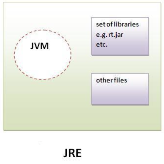 자바 실행환경 (Java Runtime Environment)이 자바 프로그램을 동작시킬 때 필요한 라이브러리 파일들과 기타 파일들을 가지고 있다. JRE는 JVM의 실행환경을 구현했다고 할 수 있다.