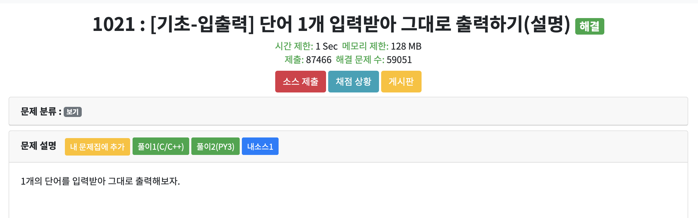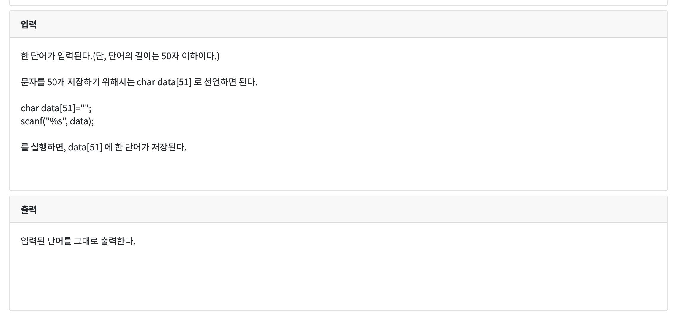 | CodeUp 1022 [기초-입출력] 문장 1개 입력받아 그대로 출력하기(설명) - C/C++ (0) | 2020.06.22 |