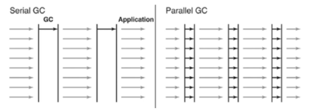 가비지 수집을 위해 여러 스레드를 사용하므로 직렬 GC에 비해 일시 중지 시간을 줄일 수 있다. Parallel Scavenge라고도 하며 멀티 코어 시스템에서 높은 처리량을 위해 설계되었다.