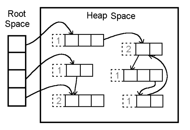 Reference Counting : Root Space가 객체를 참조한 횟수(객체로 접근할 수 있는 방법의 수)로 개체에 대한 새 참조가 생성될 때 증가하고 개체에 대한 참조가 삭제될 때 감소한다.