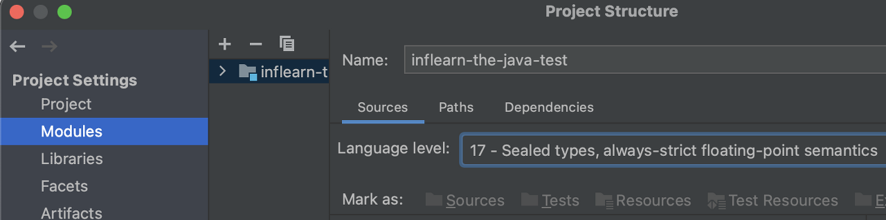 만약 Java 버전이 17 이상인데, 오류가 그대로 발생한다면 다음과 같은 설정을 하자.