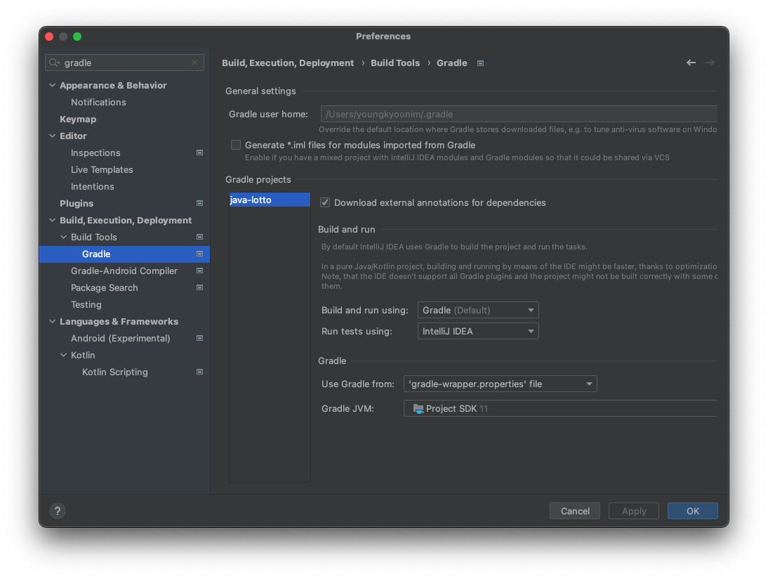 - Preferences > Gradle 검색
