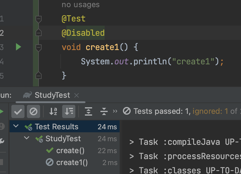 - 어떤 테스트인지 테스트 이름을 보다 쉽게 표현할 수 있는 방법을 제공하는 애노테이션.