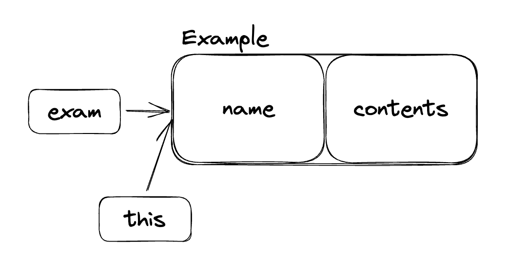 new public Example()로 생성된 객체는 name = 기본 이름, contents = 기본 내용을 가지게 된다.
