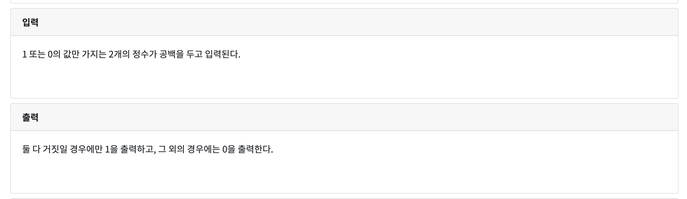 | CodeUp 1057 [기초-논리연산] 참/거짓이 서로 같을 때에만 참 출력하기 -C/C++ (0) | 2020.07.27 |